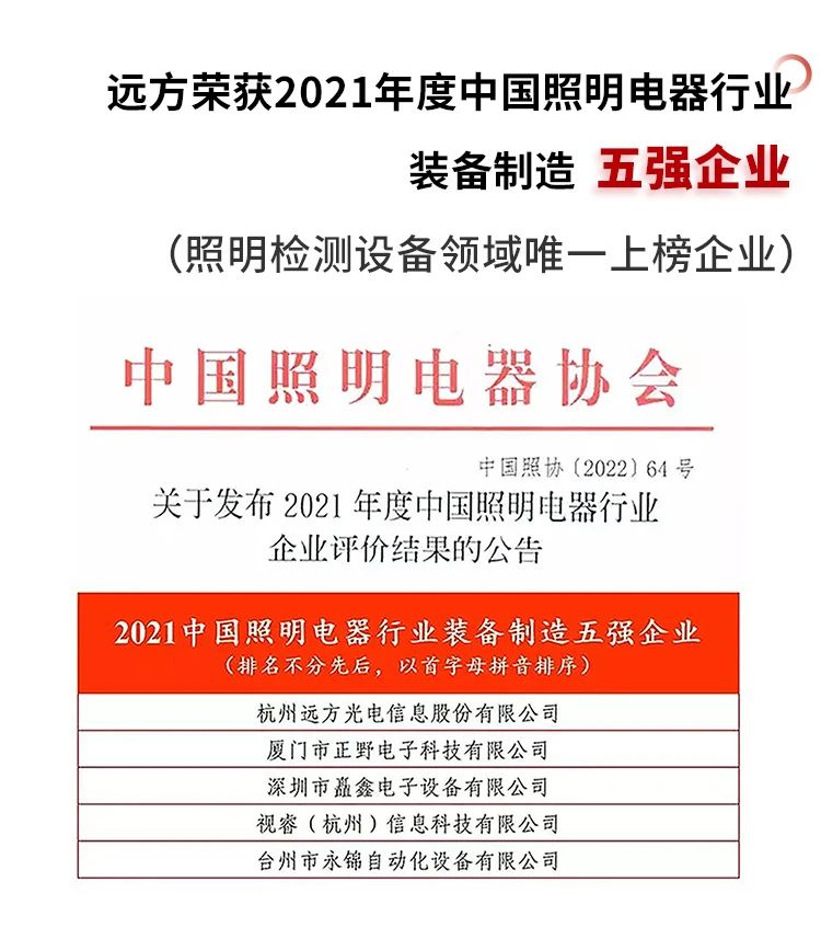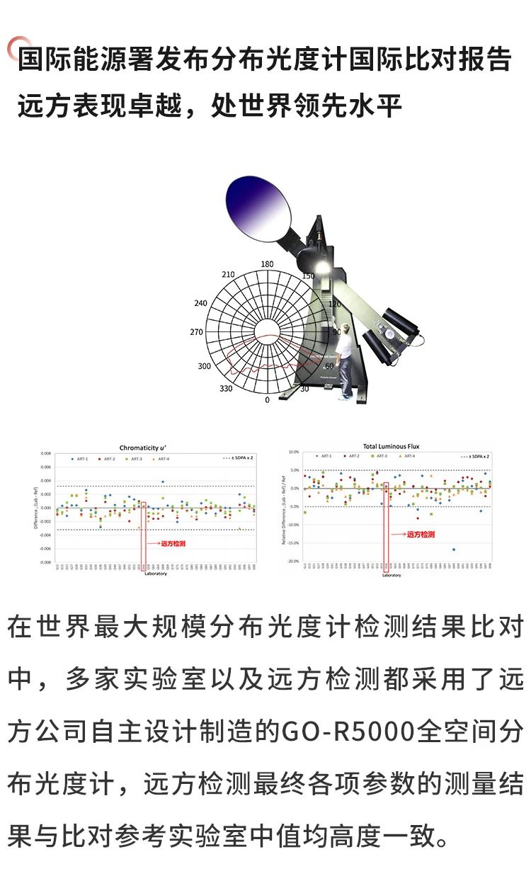 远方专业提供传统光源以及LED灯和灯具的测量设备,主要包括:光色电综合性能测量系统、配光性能测量系统、加速老化试验和寿命测量系统、光辐射安全测量(IEC62471测量)系统、零电压开启光源启动/上升时间测量系统、光源频闪测量系统、电磁兼容(EMC)测试系统。