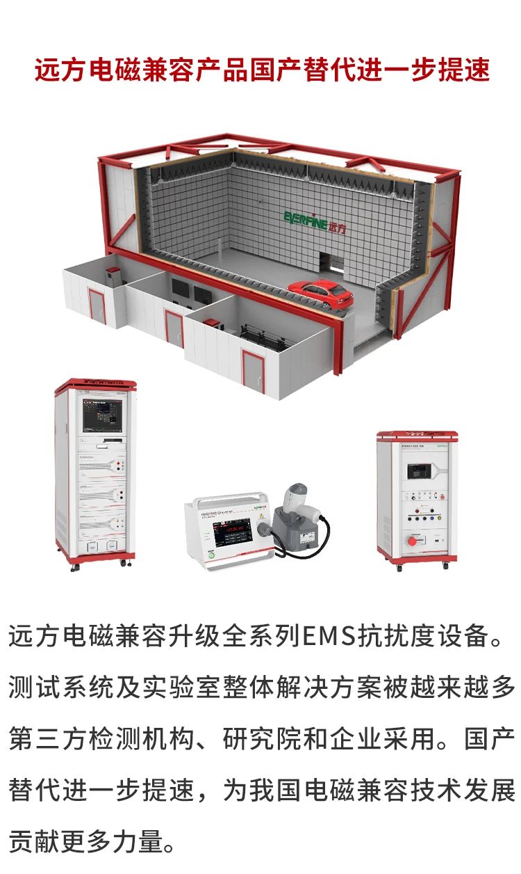 远方提供全产业链的专业信息技术类设备解决方案。主要包括传导骚扰、辐射骚扰(天线法)、谐波闪烁测试、静电放电抗扰度、电快速瞬变脉冲群抗扰度、浪涌(冲击)抗扰度、电压暂降、工频磁场抗扰度、短时中断和电压变化抗扰度测试、射频传导抗扰度、射频辐射抗扰度测试等。满足国际及国内相关标准要求